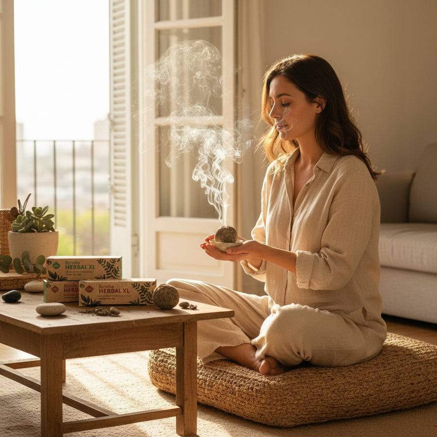 Enciende la punta, deja arder 5–10 segundos y apaga la llama. Coloca en un porta sahumerio y permite que el humo recorra el ambiente.